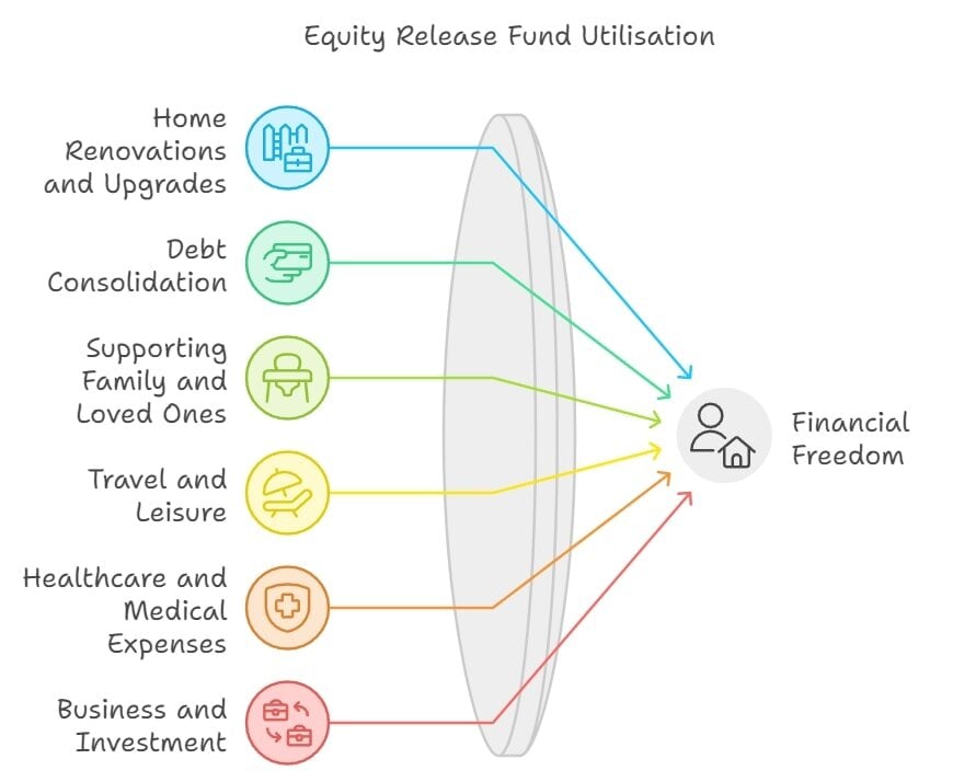 The top uses for equity release funds include home renovations, debt consolidation, supporting kin, travel, leisure and more.